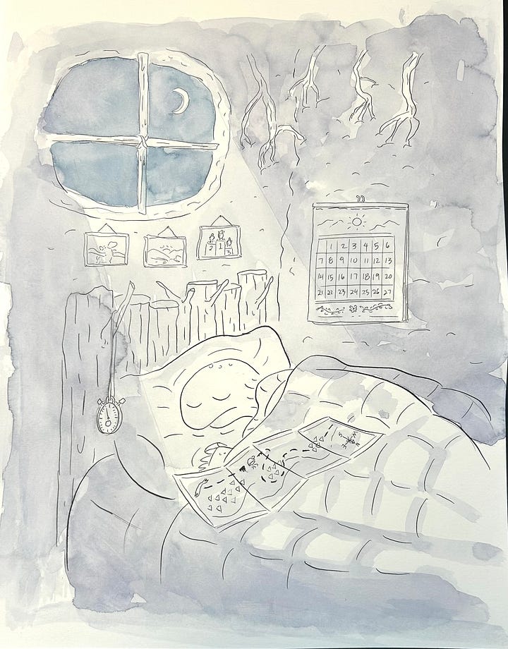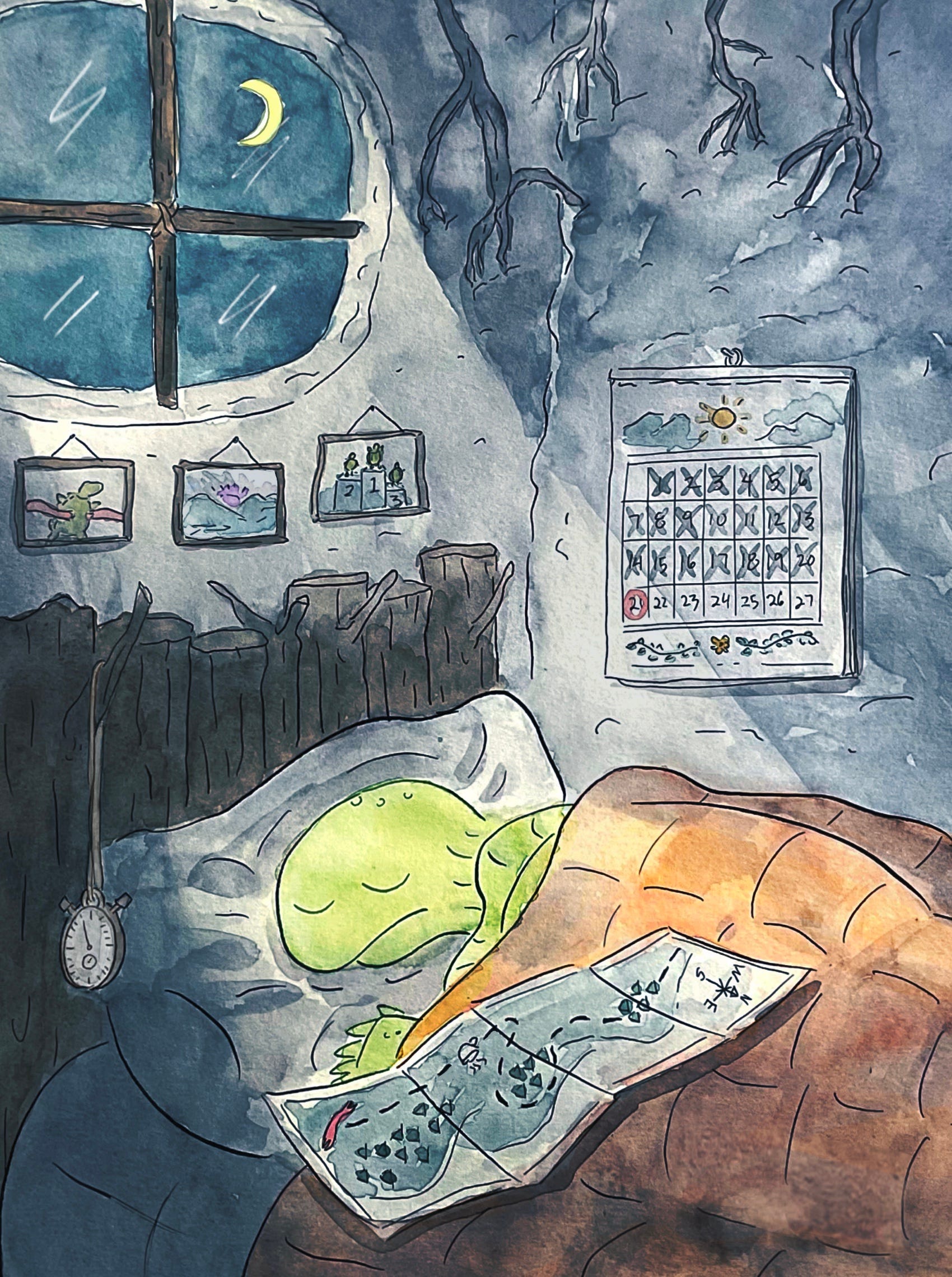 Something that’s helped me is the Illustration Dept. critique group which I’ve been attending regularly. Giuseppe brings a warm, open-minded approach to critique with insightful, encouraging feedback, and the other illustrators are just as generous—offering thoughtful suggestions and helping create a genuinely supportive space to talk about illustration and see a wide range of work. Even when I don’t have a piece to submit, I learn so much from listening to the critiques of others. Their feedback on my Night piece helped me re-center on values to improve the image.